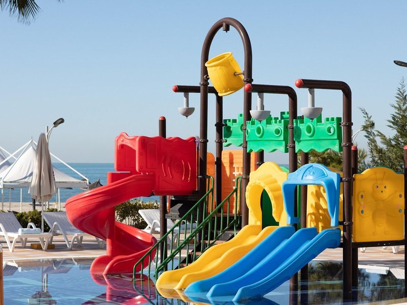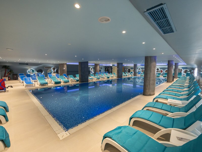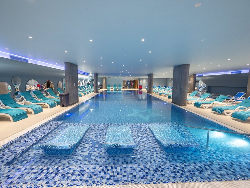 Sports & Fitness: Okrem krytých a vonkajších bazénov je k dispozícii detský plavecký areál. Čistý hlboký relax vo vírivke, zábava na tobogáne a osviežujúce nápoje v bare pri bazéne – hostia zažijú, aká rozmanitá môže byť vodná zábava. K dispozícii je slnečná terasa, ležadlá a slnečníky. Ak máte chuť si zacvičiť, môžete sa venovať cyklistike/horskej cyklistike, plážovému volejbalu a volejbalu. Pre nadšencov vodných športov je k dispozícii Aqua fitness. Hostia si môžu vybrať zo širokej škály indoorových športov v rezorte vrátane posilňovne, stolného tenisu, šípok, jogy a aerobiku. Ubytovanie ponúka rôzne možnosti wellness, ako sú kúpele, sauna, parný kúpeľ, hammam, kozmetický salón a masáže. Animačný program, detský klub a živá hudba sa postarajú o tú najlepšiu zábavu vo voľnom čase.