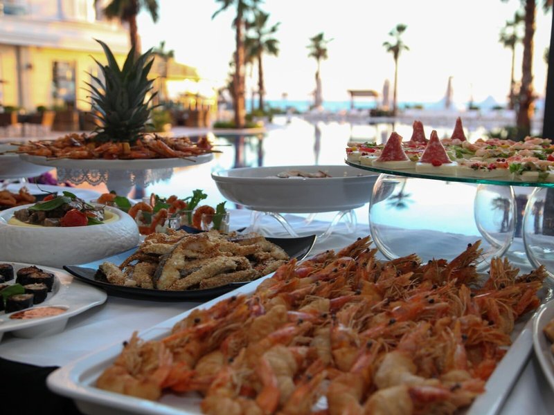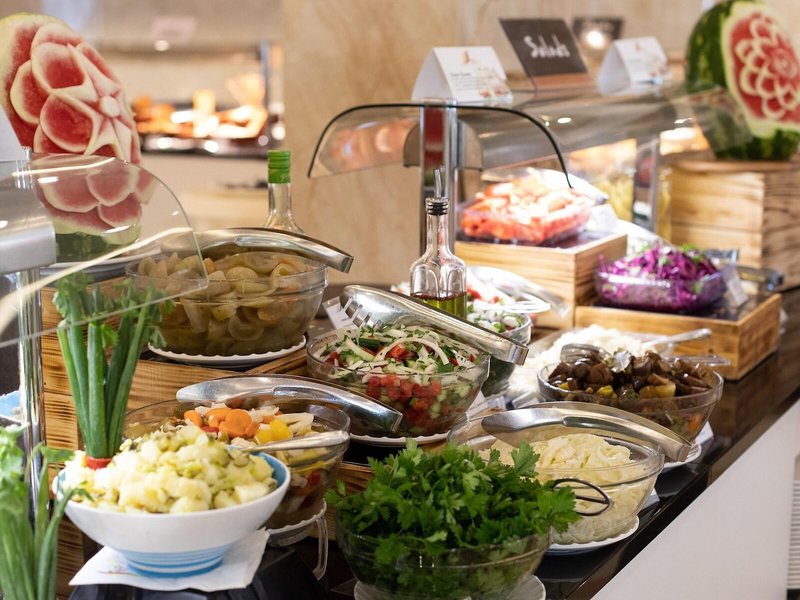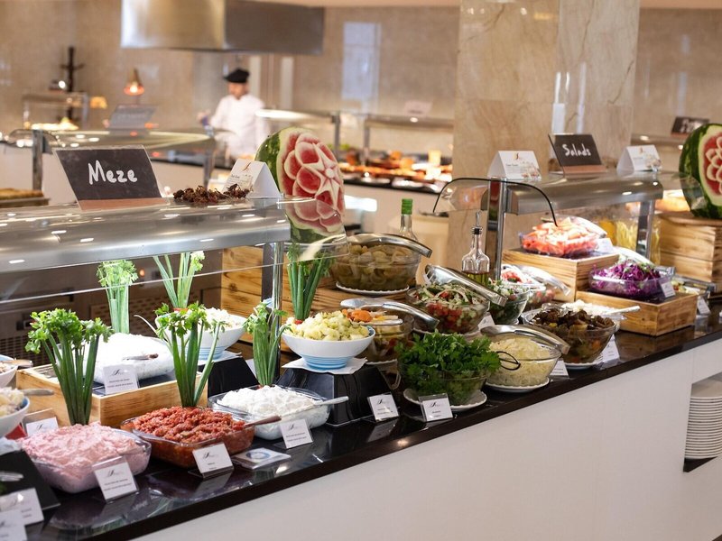 Jedlo a pitie: Stravovacie možnosti zahŕňajú reštauráciu, kaviareň a bar s polpenziou, plnou penziou a all inclusive. K dispozícii sú raňajky, neskoré raňajky, obedy a večere. V prípade potreby je možné pripraviť aj detské menu. Ubytovanie poskytuje aj občerstvenie. Špeciálnou atrakciou je show cooking. Rezort ponúka celý rad alkoholických a nealkoholických nápojov.