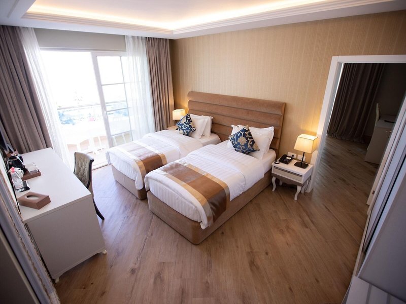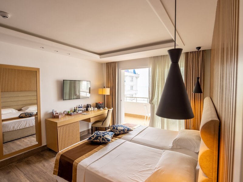 Takto sa ubytujete: Klimatizácia a kúrenie zabezpečujú príjemnú vnútornú klímu v izbách. Hostia si môžu vychutnať výhľad na more z balkóna alebo terasy. Izby majú posteľ veľkosti queen a rozkladaciu pohovku. K dispozícii sú aj detské postieľky a prístelky. K dispozícii je aj trezor, minibar a pracovný stôl. Štandardom je aj chladnička. Telefón, TV, budík a WiFi (zdarma) ponúkajú najlepší dovolenkový komfort. K vybaveniu izieb patria papuče. Kúpeľne sú vybavené sprchovacím kútom, vaňou a vírivou vaňou. Na každodenné použitie je k dispozícii sušič vlasov, kozmetické zrkadlo a župany. Je možné si zarezervovať bezbariérové izby. Ubytovanie ponúka rodinné a nefajčiarske izby.