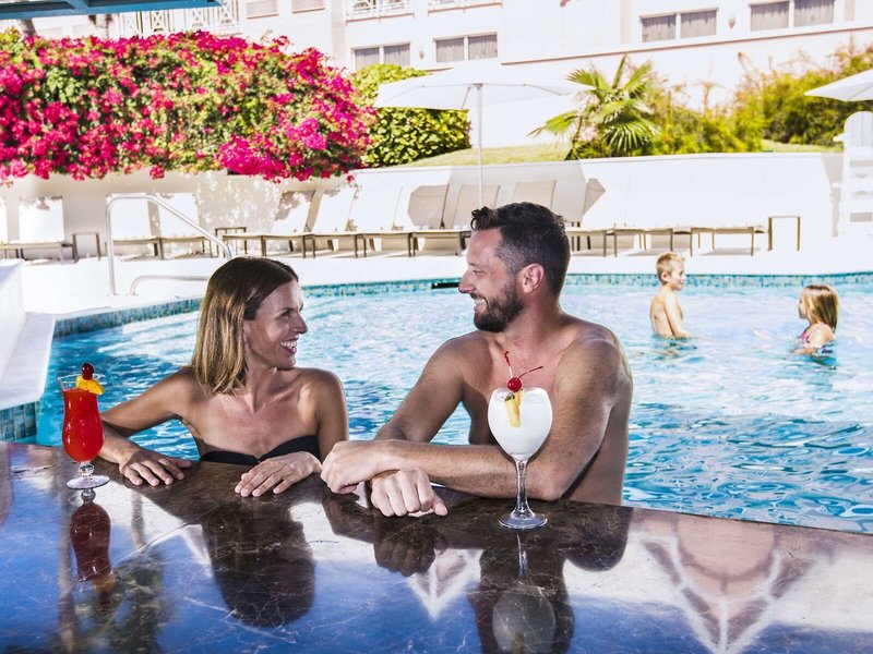 Sport & Fitness: Belebende Erfrischung garantiert die Außenpoolanlage. Auf der Sonnenterrasse mit Liegestühlen und Schirmen lässt sich der Urlaub genießen. An der Poolbar erwarten die Gäste diverse Erfrischungsgetränke. Zu den Möglichkeiten der Freizeitgestaltung in dem Hotel gehören Tennis, Golfen, Angeln, Schnorcheln, ein Fitnessstudio und ein Solarium sowie von Fremdanbietern Gymnastik.
