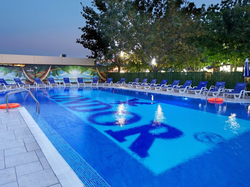 Šport & Fitness: Vonkajší bazén s detskou časťou je ideálny pre aktívny oddych a pravidelný aqua tréning. Na slnečnej terase sú k dispozícii ležadlá a slnečníky. V bare pri bazéne na hostí čakajú rôzne osviežujúce nápoje. K dispozícii sú rôzne možnosti vrátane posilňovne, aerobiku a masáží. Pre voľnočasové aktivity je k dispozícii miniklub a diskotéka.