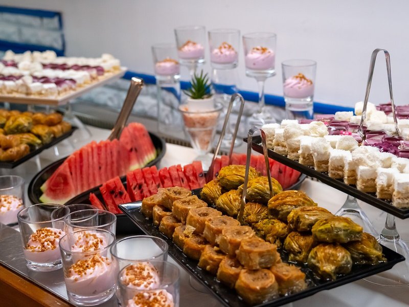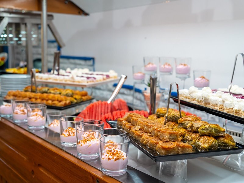 Jedlo a pitie: Na výber sú rôzne možnosti stravovania, ako je reštaurácia, kaviareň a bar. Hotel ponúka možnosť rezervovať si polpenziu a all inclusive. Raňajky, obedy a večere sú k dispozícii pre malých aj veľkých chutí. Na požiadanie je možné pripraviť diétne jedlá a detské menu. Okrem toho sú k dispozícii špeciálne jedlá a občerstvenie. K dispozícii sú nealkoholické nápoje.