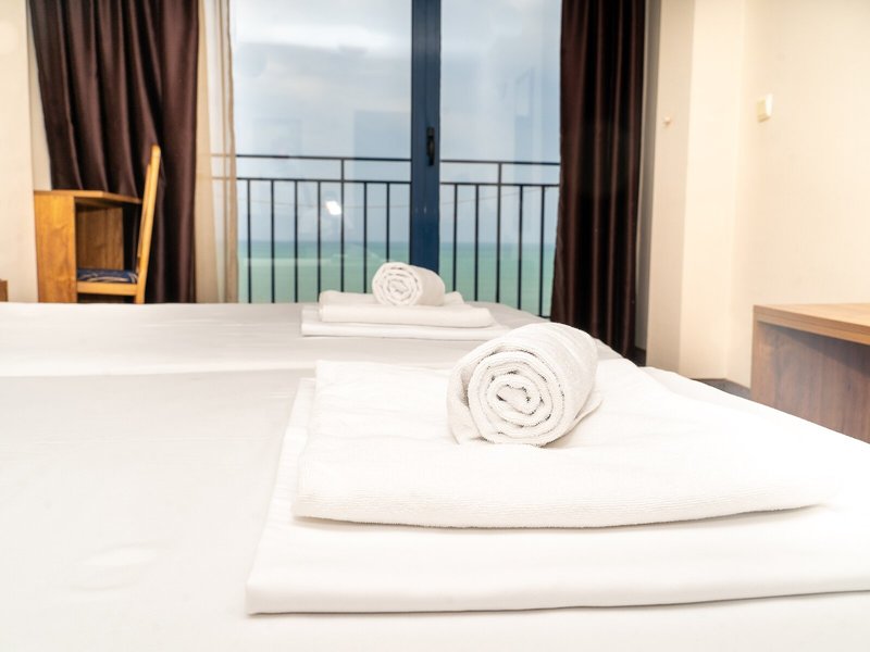 Ako sa ubytovať: V izbách je klimatizácia. Hostia si môžu vychutnať výhľad na more z balkóna alebo terasy. Izby majú manželskú posteľ alebo rozkladaciu pohovku. Cennosti môžu byť bezpečne uložené v trezore. Okrem toho je k dispozícii telefón, TV a WiFi (zadarmo). Kúpeľne sú vybavené sprchovacím kútom a vaňou. Hotel ponúka nefajčiarske izby.