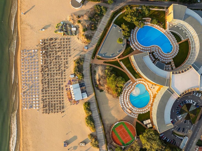 Lage & Umgebung Die Unterkunft befindet sich direkt am Sonnenstrand. Der beliebte Wasserpark Action AquaPark ist ca. 1 km entfernt, während der Resort- und Wasserpark Kuban ca. 1,5 km entfernt sind. Der Flughafen Burgas liegt ca. 29 km entfernt und ist in kurzer Zeit erreichbar.