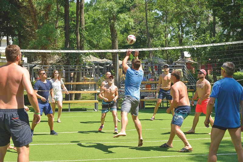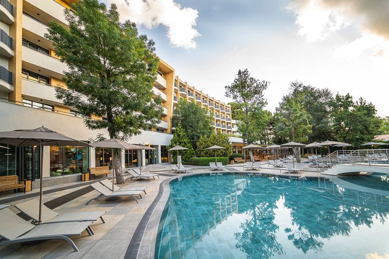 Ausstattung: Das familien- und kinderfreundliche Hotel bietet auf 6 Etagen 229 Zimmer. Am Empfang erwartet Sie eine freundliche Empfangshalle mit Rezeption, Lift und Lobby Bar sowie eine Außenterrasse und gemütliche Sitzlounges. Im Hauptrestaurant und an der Snackbar sind die Mahlzeiten in Buffetform angerichtet. Ein À-la-carte-Restaurant (ca. Juni-September) mit Balkan-Angeboten ist 1x pro Aufenthalt inklusive (Mindestaufenthalt 7 Nächte und Reservierung erforderlich). Ein Swimmingpool mit vielen Liegeflächen und Sitzgelegenheiten sorgt für Erfrischung und Badespaß. Sonnenschirme, Sonnenliegen und Badetücher sind am Pool und am Strand inklusiveDazu gibt es einen eigenen Strandabschnitt, der ca. 150m vom Hotel entfernt ist.