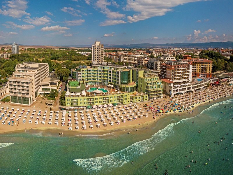 Poloha a okolie Luxusný hotelový komplex sa nachádza priamo na obľúbenej južnej pláži Nessebar. Na polostrov s historickým starým mestom, ktoré je súčasťou svetového dedičstva UNESCO, je to asi 1,9 km. Odtiaľto môžete preskúmať množstvo ďalších pamiatok, ako aj krásne pobrežie Čierneho mora.