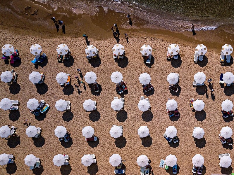 - Strand: Sand, Liegen, Sonnenschirme