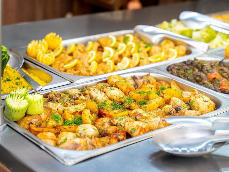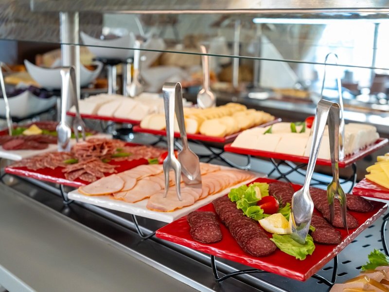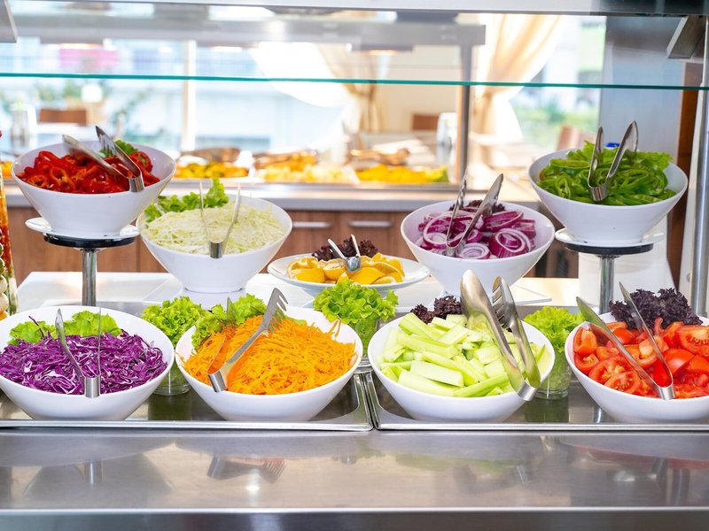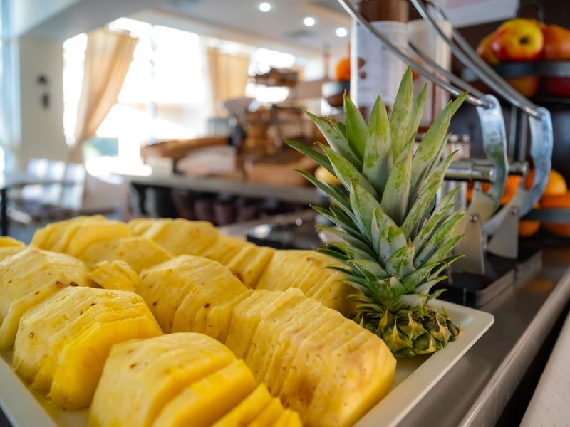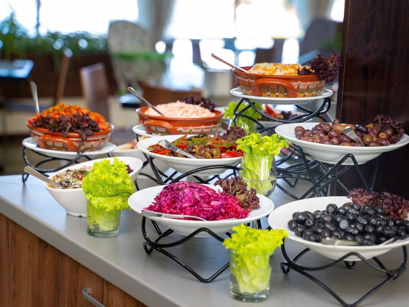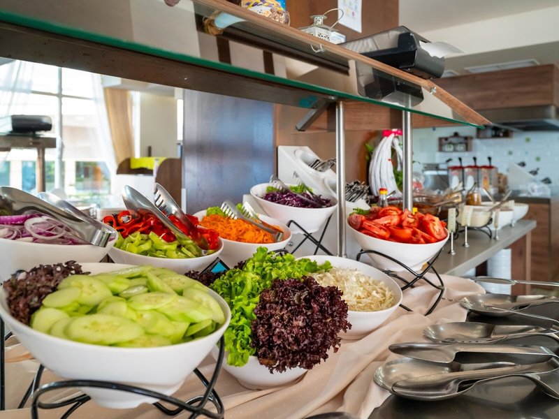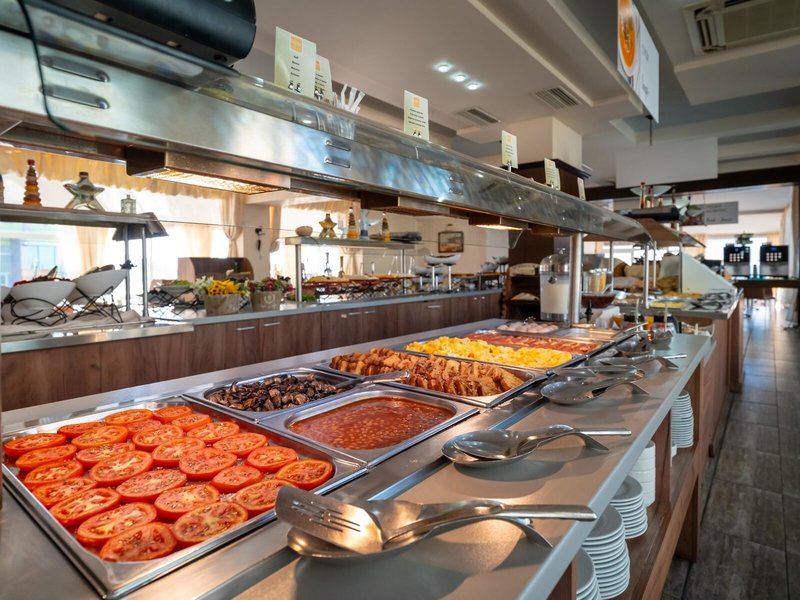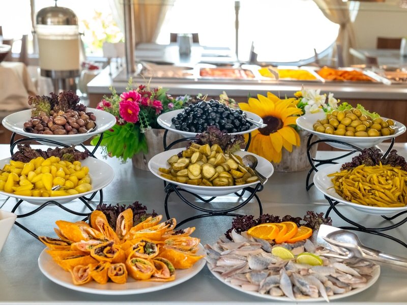 - Hlavná reštaurácia: Kuchyňa: medzinárodná, regionálna, bezlepkové jedlá: na vyžiadanie nutná, rezervácia nie je nutná, bezlaktózové jedlá: na vyžiadanie nutná, vegetariánske jedlá, vegánske jedlá: na vyžiadanie nutné, bufet, show cooking, bez poplatku, denne 7:30 - 10:00, 12:30 - 14:30 a 18:30 - 21:30 s terasou, detskou stoličkou, vhodné oblečenie