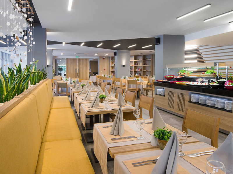 - Hauptrestaurant: Buffet, ohne Gebühr, bei All Inclusive inklusive, täglich 07:30 Uhr - 10:00 Uhr, 12:00 Uhr - 14:00 Uhr und 18:00 Uhr - 21:00 Uhr, Kinderhochstuhl
