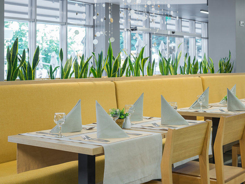 - Hlavná reštaurácia: bufet, zdarma, v rámci All Inclusive, denne 7:30 - 10:00, 12:00 - 14:00 a 18:00 - 21:00, vysoká stolička