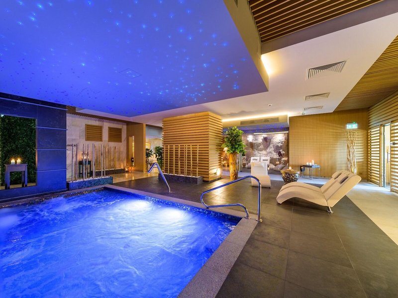 - Bazény: Vyhrievaný vonkajší bazén, vnútorný bazén, vonkajší bazén, slnečníky pri bazéne, ležadlá pri bazéne