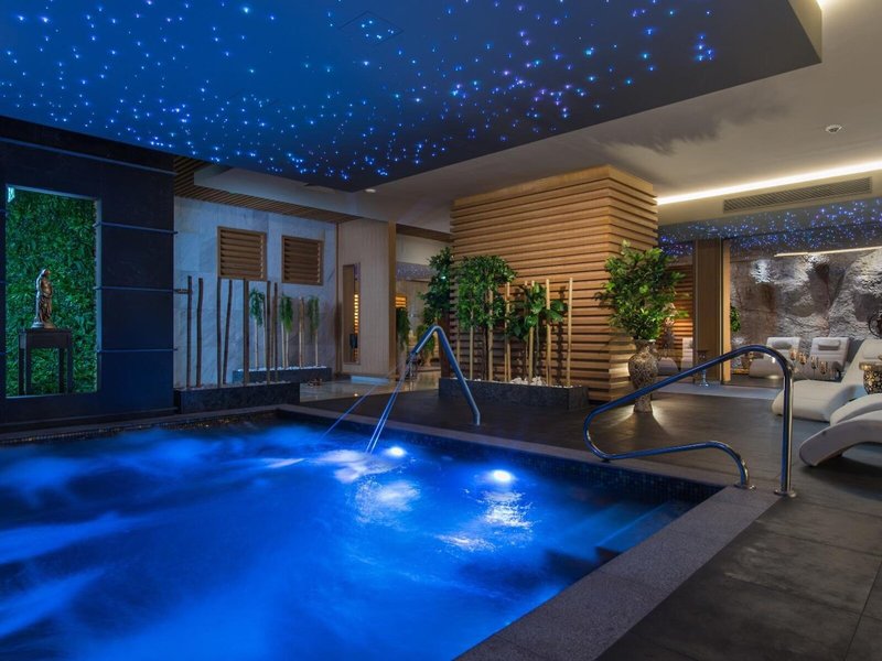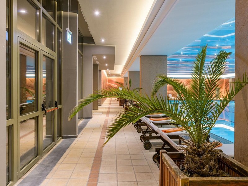 Šport a fitnes: Príjemne vyhrievaná voda vo vnútorných a vonkajších bazénoch zaručuje zdravý zážitok z plávania. Osviežujúce nápoje v bare pri bazéne a upokojujúca relaxácia vo vírivke naladia všetkých milovníkov vody. Slnečná terasa s ležadlami a slnečníkmi je ideálnym miestom na strávenie dovolenky. Na mieste sa ponúkajú rôzne aktivity vrátane cyklistiky/horskej cyklistiky, tenisu, golfu a jazdy na koni. Milovníci vodných športov si môžu užiť potápanie a vodné fitness. Hostia majú prístup k širokej škále vnútorných športov vrátane posilňovne, stolného tenisu, biliardu a aerobiku. Hotel ponúka rôzne wellness možnosti, ako sú kúpele, sauna, parný kúpeľ, hammam, kozmetický salón, masáže, kúpeľné procedúry, talasoterapia, omladzujúce procedúry a solárium. Zábavný program, detský klub a diskotéka zabezpečia veľa zábavy pre všetky vekové kategórie.
