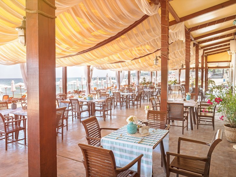 Jedlo a nápoje: Hotel ponúka stravovacie služby v reštaurácii, kaviarni a bare. K dispozícii je polpenzia a all inclusive stravovanie. Podávajú sa raňajky, obedy a večere. Hotel uspokojí aj špeciálne diétne požiadavky vrátane diétnych jedál a detských menu. K dispozícii sú aj ďalšie špeciálne ponuky jedál a občerstvenia. Vynikajúci hoteloví kuchári pripravujú lahodné špeciality počas ukážok varenia naživo. K dispozícii je aj výber alkoholických a nealkoholických nápojov.