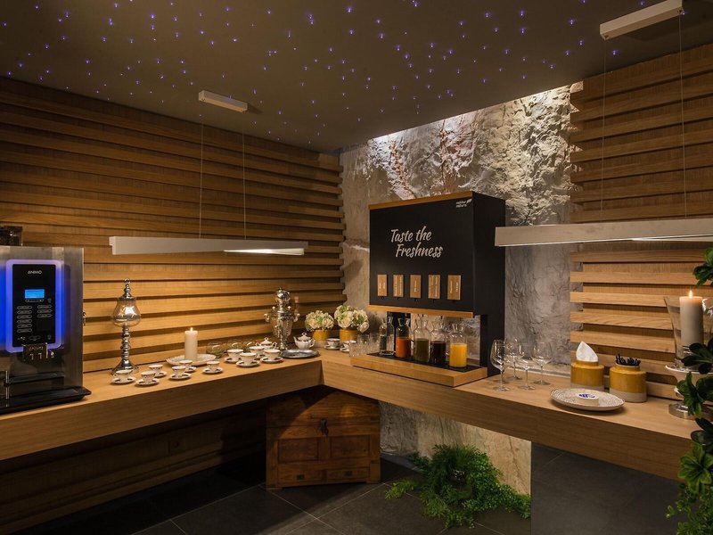 Essen & Trinken: Die gastronomischen Einrichtungen umfassen ein Restaurant, ein Café und eine Bar. Das Haus bietet als buchbare Verpflegungsleistungen Halbpension und All-Inclusive. Angeboten werden Frühstück, Mittagessen und Abendessen. Es sind auf besondere Bedürfnisse angepasste Speisen im Angebot: Diätgerichte und Kindermenüs. Zusätzlich sind spezielle Verpflegungsangebote und Snacks erhältlich. Die hervorragenden Köche bereiten beim Showcooking köstliche Spezialitäten zu. Das Hotel führt ein Sortiment alkoholischer und alkoholfreier Getränke.