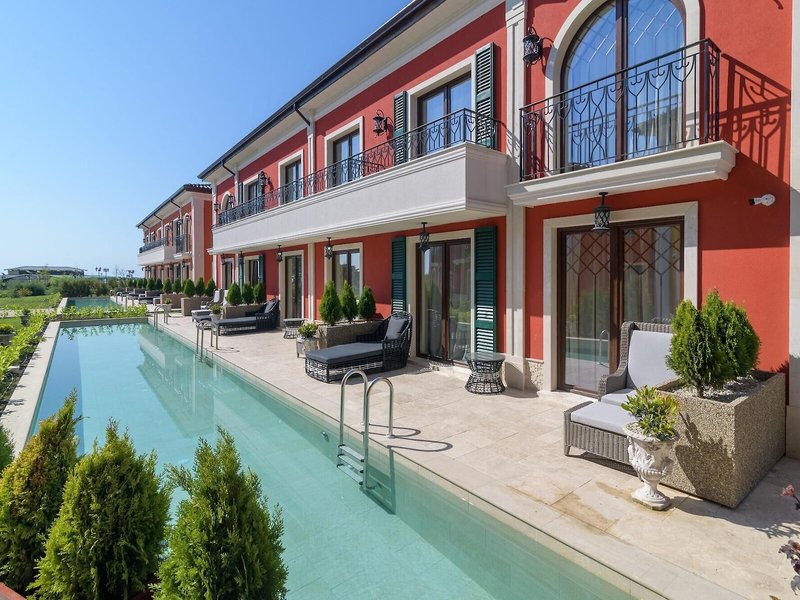 - Bazény: Detský bazén, Vyhrievaný vonkajší bazén, Vnútorný bazén, Vonkajší bazén, Slnečníky: zadarmo, Ležadlá pri bazéne
