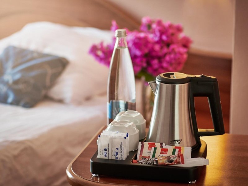 Essen & Trinken: Es stehen verschiedene gastronomische Einrichtungen zur Auswahl, wie ein Frühstückssaal, ein Café und eine Bar. Verschiedene Spezialitäten erwarten die Gäste in einem Nichtraucherrestaurant mit Klimaanlage. Die Unterbringung bietet als buchbare Verpflegungsleistungen Übernachtung inkl. Frühstück, Halbpension und Vollpension. Ein reichhaltiges Frühstücksbuffet garantiert einen guten Start in den Tag. Mittags und abends gibt es die Wahl zwischen Buffet, à la carte und Menü.