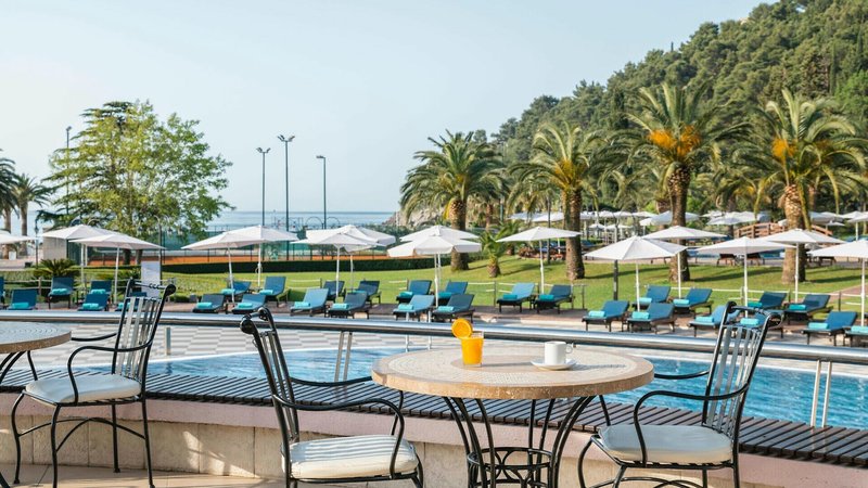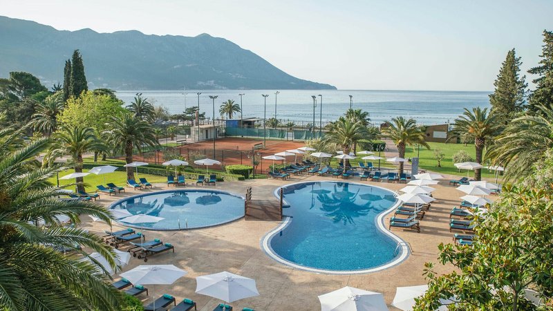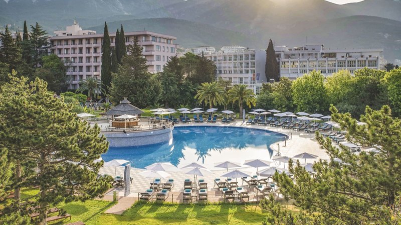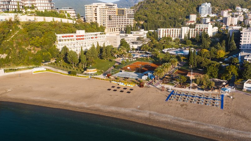 Poloha: Priamo na piesočnatej/kamienkovej pláži Bečići, obklopená záhradami. Staré mesto Budva je vzdialené asi 2 km. Reštaurácie a bary sú v bezprostrednej blízkosti.Vybavenie: Klimatizovaný (jún, júl, august) hotel má 583 izieb rozmiestnených v 3 budovách. K vybaveniu patria tri recepcie s recepciou, 2 lobby bary (piano a lobby bar, každý za poplatok), výťahy, 5 ďalších AI barov, Wi-Fi v hoteli, dve nefajčiarske reštaurácie, pizzeria/snack bar a vyhrievaný sladkovodný krytý bazén a vírivka. Vo vonkajšom areáli sa nachádzajú 3 sladkovodné bazény (dva pre dospelých a jeden pre deti) s terasou a barom pri bazéne. Pri bazéne sú zahrnuté ležadlá, vankúše a slnečníky. Plážové osušky sú k dispozícii na recepcii za zálohu. Na pláži sú k dispozícii lehátka a slnečníky za poplatok.