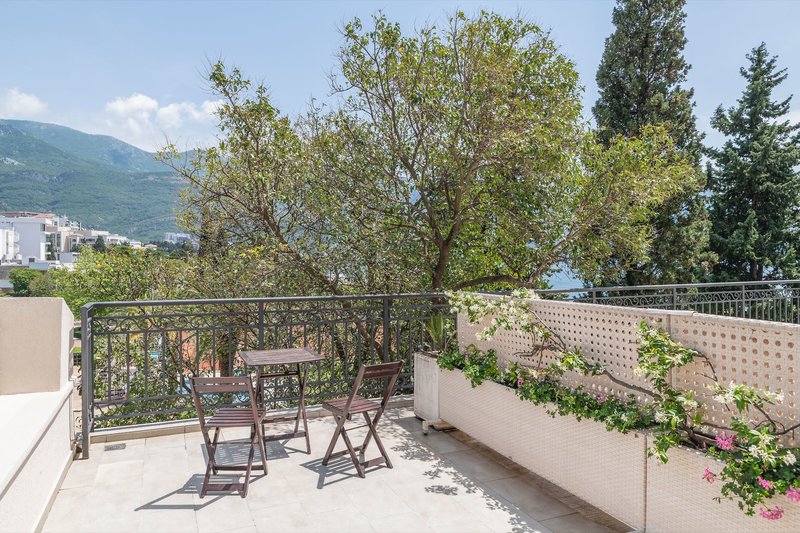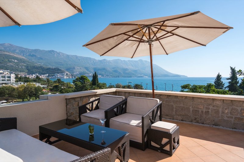 Lage: Direkt am Sand-/Kiesstrand von Becici, umgeben von einer Gartenanlage. Die Altstadt von Budva ist ca. 2 km entfernt. Restaurants und Bars befinden sich in unmittelbarer Nähe.